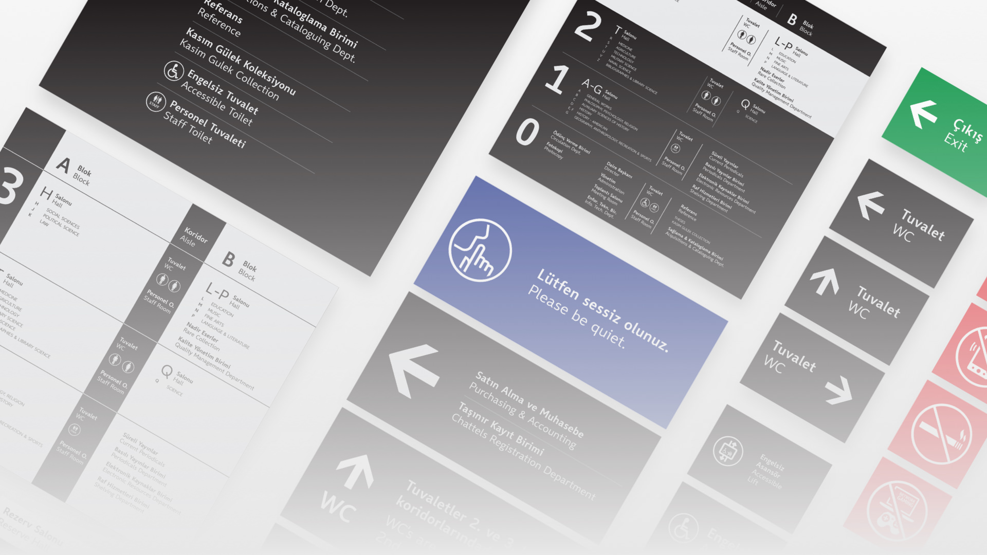 During my last two weeks in METU, I have worked with our library management to update the signage before their building renovation. Our aim was to create a uniform and adaptable signage system with-in a small renovation budget.